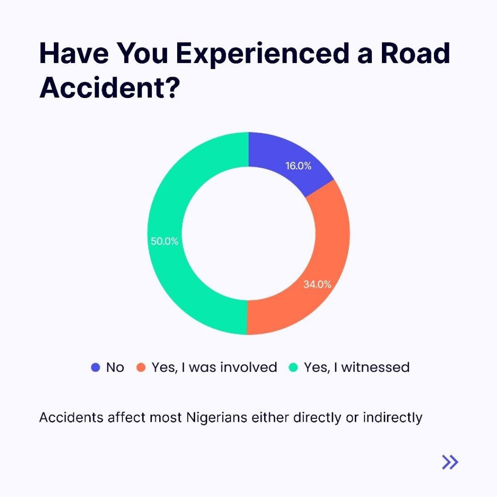Addressing this issue requires an understanding of public perception about road accidents and the efficiency of emergency response services. To contribute to this conversation, a survey was conducted to gather insights into Nigerians’ experiences and opinions regarding road accidents and safety responses. The survey explored questions around accident experiences, perceived causes of accidents, accident timing, response time of officials, resource adequacy, and recommendations for improvement.