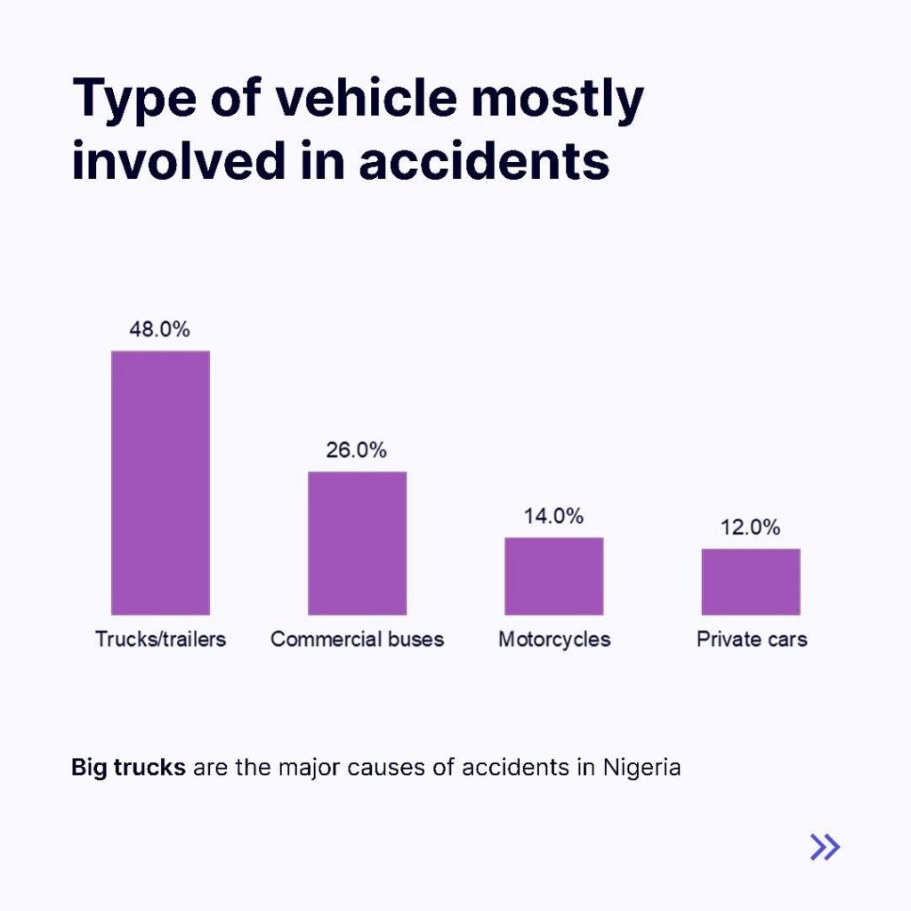 Insight: Trucks and trailers are perceived as the most frequent culprits in road accidents, likely due to poor maintenance, overloading, and inadequate monitoring of heavy-duty vehicles.