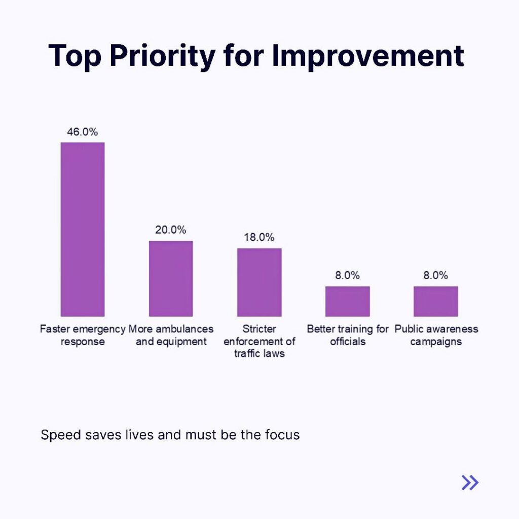 The perception of slow emergency response and inadequate resources is a critical red flag. When accidents occur, timely intervention can mean the difference between life and death. Unfortunately, the majority of respondents feel that road safety officials lack both the speed and resources to respond effectively.