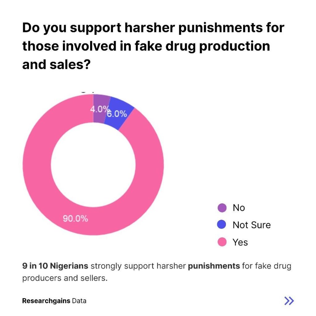 The demand for justice is overwhelming. Ninety percent of respondents support harsher punishments for those involved in the production and distribution of fake drugs. This finding indicates strong public pressure for reforms and strict enforcement of laws.