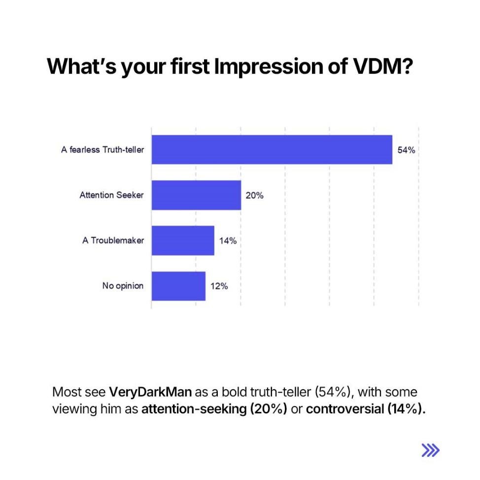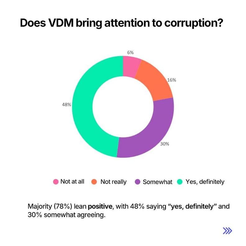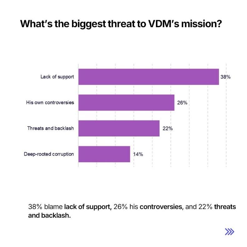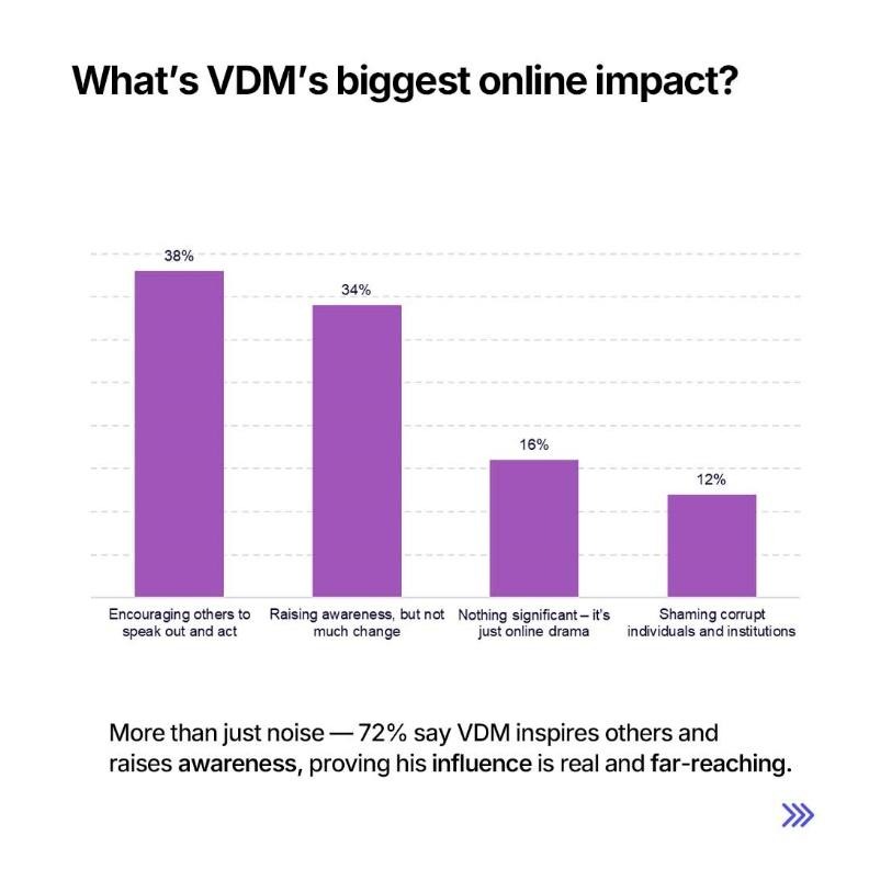 The majority of respondents, over half, see VDM’s boldness as sincerity, not noise. This is a significant marker of credibility in a climate where many believe that truth is suppressed and corruption normalized.