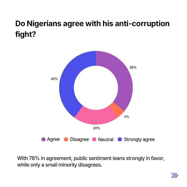 Over 75% of Nigerians either agree or strongly agree with his anti-corruption message. That is a powerful endorsement, not just of the man, but of the urgency of his mission.